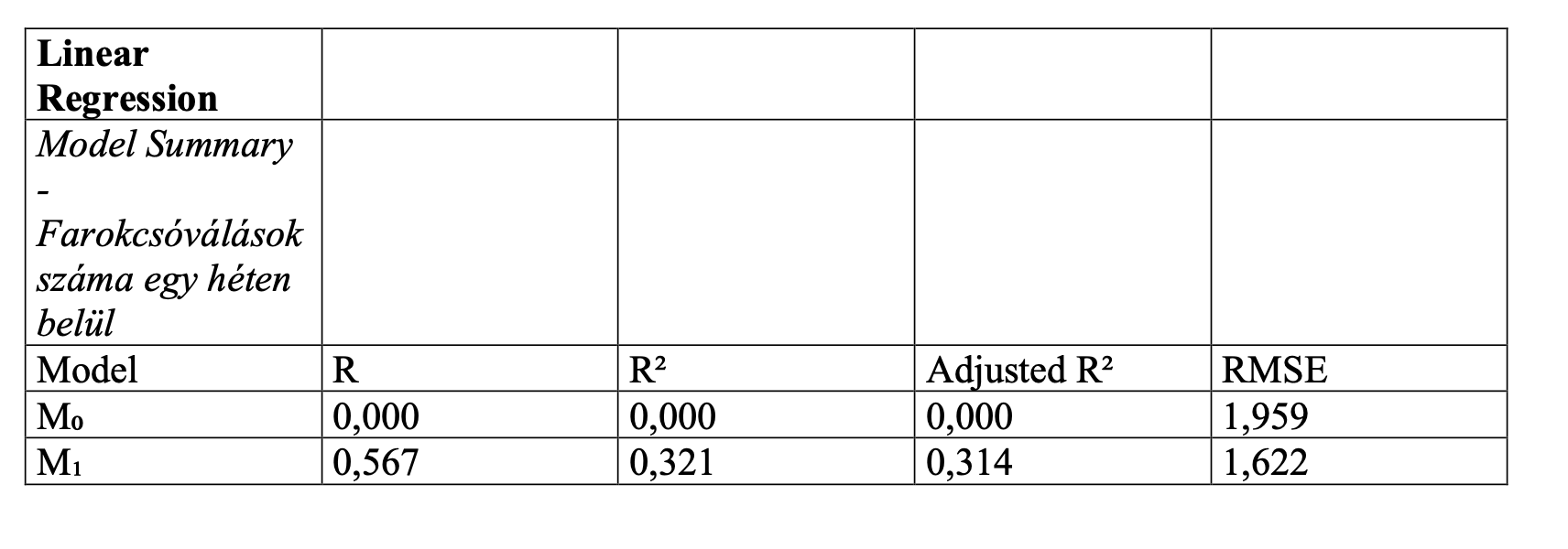 Modell summary (modell összefoglaló táblázat) a lineáris regresszióban